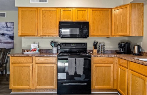 The interior of the home has been carefully furnished to ensure your ultimate relaxation. Plush and inviting living room seating welcomes you to take a peaceful afternoon nap or gather the group together for an evening of entertainment on the smart TV. A generous dining room table can seat 10 for formal meals or play host to a rousing game of cards. The spacious kitchen has enough room for a crowd to prepare delicious home cooked meals or a spread of afternoon hors d’oeuvres. Fully equipped with all standard appliances, you’ll also find a Keurig coffee maker with dual drip and single-serve function as well as ample cookware and dinnerware for all your dining needs.