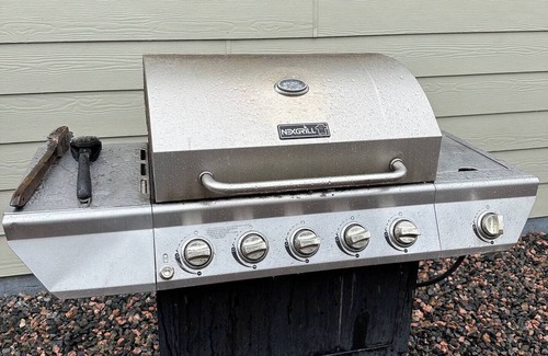 OUTDOOR LIVING: Fenced backyard with dining table and umbrella, propane BBQ grill, and outdoor games. Guests also enjoy access to the community pool in summer, plus nearby parks and trails!