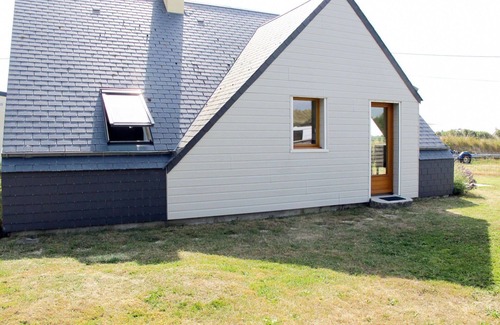 The detached modern house "Neptune" offers a private vacation rental experience in the hamlet of Anneville-sur-mer, France. With a spacious fenced property of 700 m2, including a natural garden and meadow, it provides ample outdoor space and parking facilities.